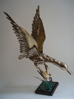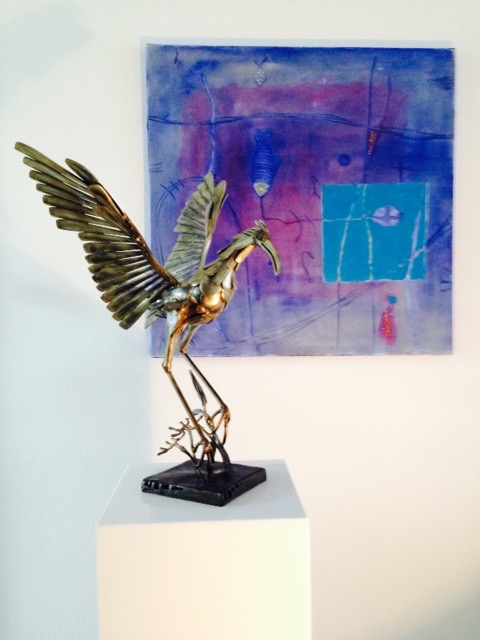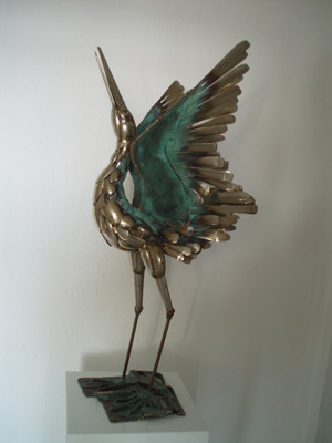 | Reiher mit offenen Flügeln, H 57 cm / Bild 80 x 80 cm |